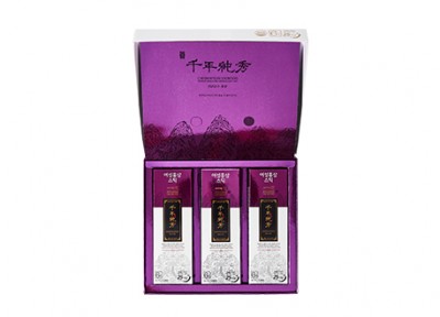 | 원재료명 및 함량 | 흑삼분말액 진[고형분 8.9%, 정제수, 흑삼분말, 국산]79.4%, 홍삼농축액(고형분 60%이상, 홍삼성분 70mg/g 이상, 진세노사이드 Rg1+Rb1+Rg3의 합 23mg/g이상, 국산)16%, 석류농축액(65brix), 녹용추출액, 수용성아쿠아민(칼슘12%), 아사이 혼합 베리농축액(65brix), 유기농 아로니아농축액(65brix), 유기농 콩코드포도농축액(68brix), 17종 유기농 과일야채 혼합분말 |